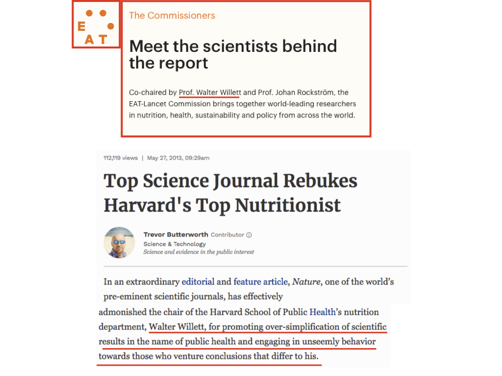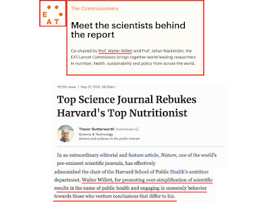 And in 2013 one of the world's pre-eminent scientific journals, Nature, took the extraordinary step of publicly rebuking Willett for over-simplifying research results, discarding data that didn't fit his views, and engaging in unseemly behavior towards people who venture conclusions different from him.